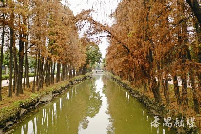 流经新桥村的雁洲涌长5660米,呈南北走向横穿新桥村,新桥村民习惯叫它新桥涌或新溪——它对新桥村的影响悠长深远!现在的雁洲涌水清岸绿,河里鱼儿畅游,两岸风光旖旎。从市莲路至亚运大道段长约1.6公里的涌堤边增设了碧道、路灯、口袋公园、小广场,并进行了绿化升级改造,建设成为了城镇型标准碧道。只见涌水清澈,两岸绿树成荫,北边一段两岸栽种了落羽杉,深冬初春正是落羽杉变色期,红铜色、明黄色、青绿色……色彩交映,一场赏心悦目的色彩盛宴正在上演。