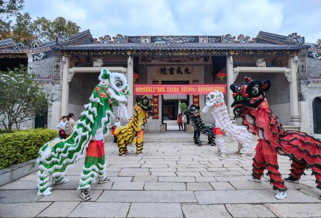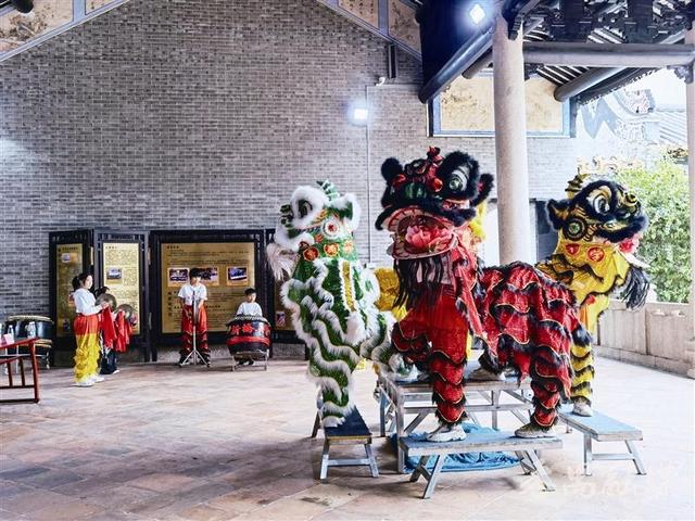 跨龙桥(澄子摄)“文澜狮海壮,武略虎门深”。九成书院早已与新桥学校融为一体,时值学生寒假,原本安静的校园每天都锣鼓喧天,唱得又是哪一出呢?原来,九成书院作为新桥学校醒狮、武术、书法训练基地,同学仔、武术爱好者们隔三岔五就在这里进行日常训练或举办活动。采访时,这里就刚好举办醒狮交流活动,一众小队员在这里切磋“武艺”。在新桥小学的武术醒狮社团里,社长是一位名叫胡诺菲的女生,“以前的舞狮技艺传男不传女,醒狮是我们新桥村的非物质文化遗产,传承就不应该有男女之分,就算以后小学毕业了,我也不会离开醒狮队伍,我会继续学习醒狮的技艺,传承新桥村醒狮文化精髓!”胡诺菲说。