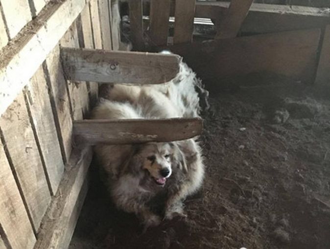 没错,国外乡下就出现了一只这样的狗狗。起初人们还不信,可当真正一睹狗狗尊颜的时候真是让人大吃一惊。只见狗狗躺在一个破旧的小圈房里,浑身脏兮兮的。