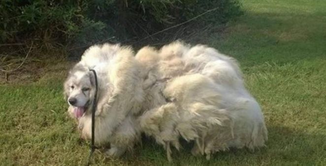 经过一番打理,剪下来的毛足足有80斤重,真是罕见呐。如今的狗狗看着就舒服多了,主人还给它仔细打扮了一番,戴上了项圈,这才是正常的狗狗嘛,这才是狗狗应有的形象嘛!哈哈~