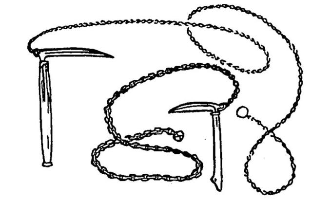 另外每个流派使用的锁镰各自不同,刀刃形状有呈直角形的,也有微微内勾形,总之样式非常之多,重量以及铁锁链的长度也不同,但目的都相同,那就是出其不意取人性命。日本目前保留的古代忍者使用的各类锁镰中,最大的一种叫做“八重镰”,这种锁镰刀头巨大,手柄长达7尺,而且一条铁链分散八口镰刀。除非是天生神力之人,否则很难耍动,被这种锁镰碰到,不是砍死的,是砸死的。