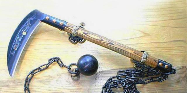 不论是看日本大河剧还是玩战国游戏,我们经常看到会有一种特殊武器出现,这玩意前段是镰刀,后端是锁链,末端是尖镖或铁球。而惯用这种特殊武器者往往是神秘的忍者。这种武器叫做“锁镰”,日语发音为“くさりがま”,这名字倒是非常贴切,既有锁又有镰,农时可以割麦子,战时可以割脖子。