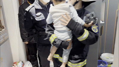 门被破拆成功,孩子被救出