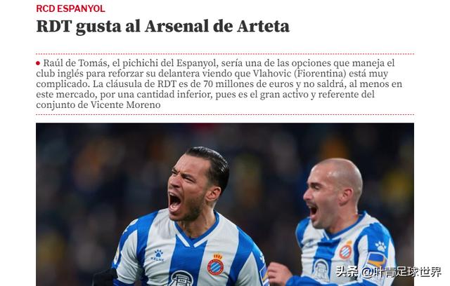 阿森纳最想要的前锋,是意甲佛罗伦萨的00后弗拉霍维奇。22岁的弗拉霍维奇,本赛季意甲打进17球,状态极佳。不过,弗拉霍维奇的意愿是留在意甲,根本没考虑过阿森纳、热刺。阿森纳只能转移目标,盯上西班牙人的德托马斯。