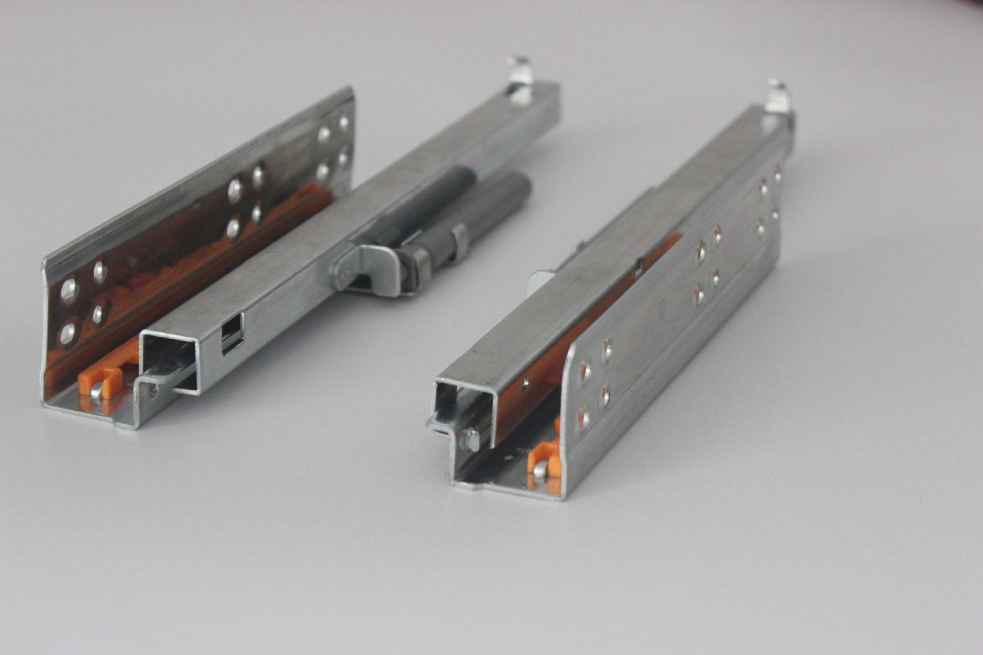 钢材质的滑轨它的颜色会是比较深的银灰色,细腻的质感跟铝制的相比,它的滑轨厚度会更大一些。钢质滑轨喷粉它的颜色会比较浅一些,厚度比钢质的薄、比铝质的能厚一些。