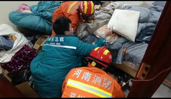 1月23日晚9点18分,郑州市惠济区迎宾路消防站接到120电话称,惠济区一沿街门店内,一病人在房间里被困,四肢无力无法行动。
