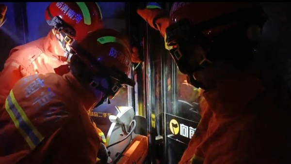 消防员仔细查看后,立即实施救援行动,迅速用切割机将锁具切断,120进入现场后立即对被困人员进行急救。