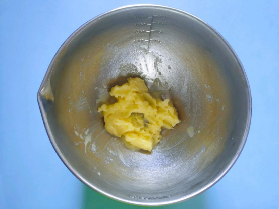 1、准备好所有原材料,将黄油隔水融化后放入干净无水盆中,倒入糖分搅拌均匀。因为黄油不适宜直火加热,所以将黄油隔水加热,水的温度控制在100摄氏度以下即可,待黄油融化后立即拿出来。