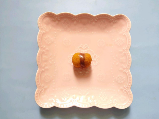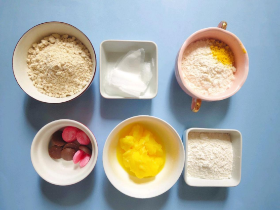【配料】巧克力(粉色、黑色)少许、威化纸1张、南瓜粉5g、糖分30g、杏仁粉55g、黄油80g、低筋面粉80g